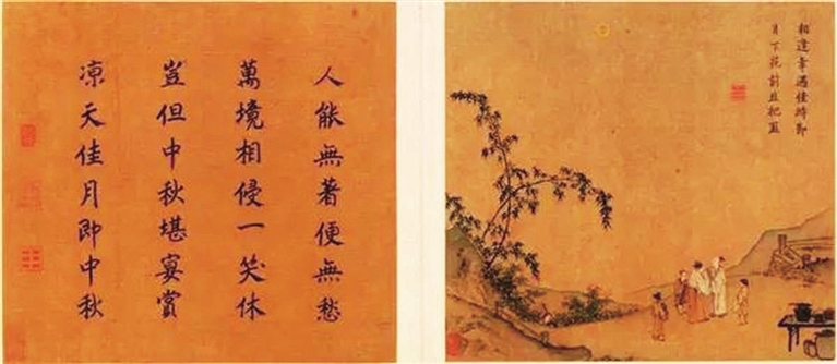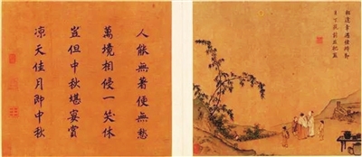 ~~~中秋祭月仪式,意在消灾祈福。这幅《祭月图》描述的便是中秋夜人们面月设祭案,案呈月饼、月果等圆形供品,对月拜祭的情景。