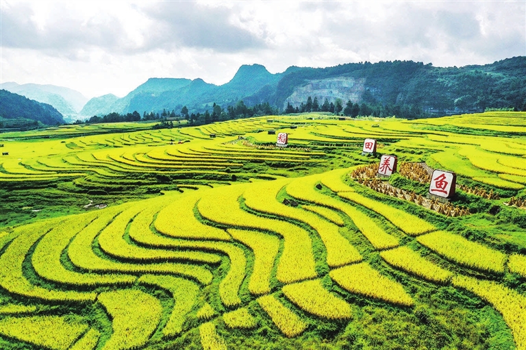 贵州省龙里县湾滩河镇石头村的稻田(9月15日摄,无人机照片)。