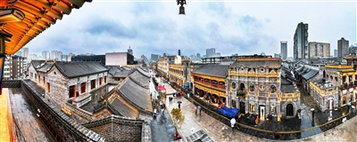 沿着钟楼街由东向西,开明照相馆、亨得利、华泰厚、开化市、钟楼街邮局、乾和祥、合作大楼、恒义诚、亨升久、大宁堂……耳畔仿佛还萦绕着昔日商贩们的吆喝声,眼前掠过的却是家家百年老号青春的容颜。