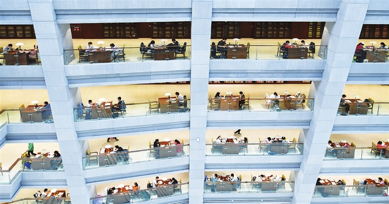 9月19日是中秋小长假第一天,在太原市图书馆里,一早来这里阅读、自习、学习传统文化的市民络绎不绝,他们选择用学习“充电”的方式度过一个不一样的假日。 梁琛 李学军 摄