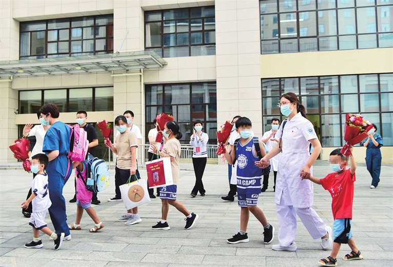 此次出院的8名患者,最小4岁,最大62岁,其中有4名是儿童。出院后,8名患者将继续进行康复观察。医院特别准备了祝福卡片、生活用品、健康宣教手册等,给孩子们准备了书包和小礼物,表达全体医护人员的美好祝愿。
