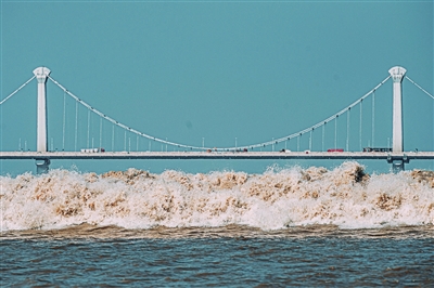 当日是二十四节气中的秋分。今年秋分适逢农历八月十七,钱塘江上迎来滚滚浪潮。钱塘江大潮久负盛名,每年农历八月十八前后是观赏钱塘江潮水的最佳时机。新华社 发
