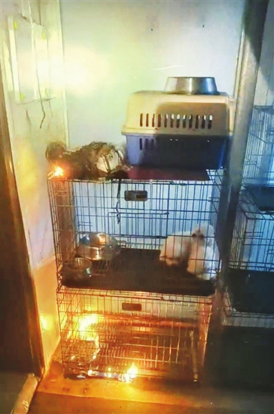 当日清晨7时许,宠物店尚未开门,但隔着店门的橱窗,有人发现店里有明火出现。伴随着明火的燃烧,还传来了宠物狗的惊叫声。接到报警后,消防救援人员迅速赶到现场,进入店内了解情况。经确认,是布设在店内墙上的电线发生燃烧,火团恰巧落在紧挨墙的宠物笼内。笼子里,两只洁白的宠物狗被吓得蜷缩在一起,但又无处可躲,几乎就要被殃及。经处置,明火很快被扑灭,笼里宠物转危为安。