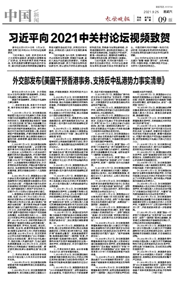 外交部发布《美国干预香港事务、支持反中乱港势力事实清单》