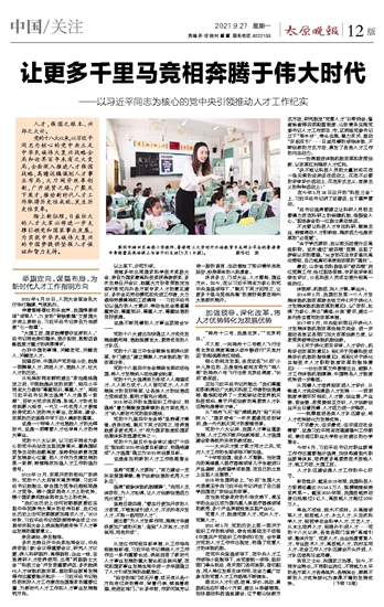 | 太原晚报 中国关注 12 2021-09-271 2021年09月27日 星期一 |