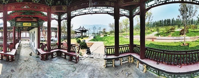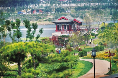 这是一个绿意盎然的工程。两岸自行车道总长18.7公里,园路总长约45.8公里;栽植乔灌木7.73万株,地被、水生植物共计130余种;建有景观桥3座,福源阁、叠翠轩、慈萱亭、翰墨苑、丹亭、望岳阁、霜红亭等文化古建景点7处,新增临水平台、观景台、趣味沙滩、画廊、草亭等景观生态景点27处。