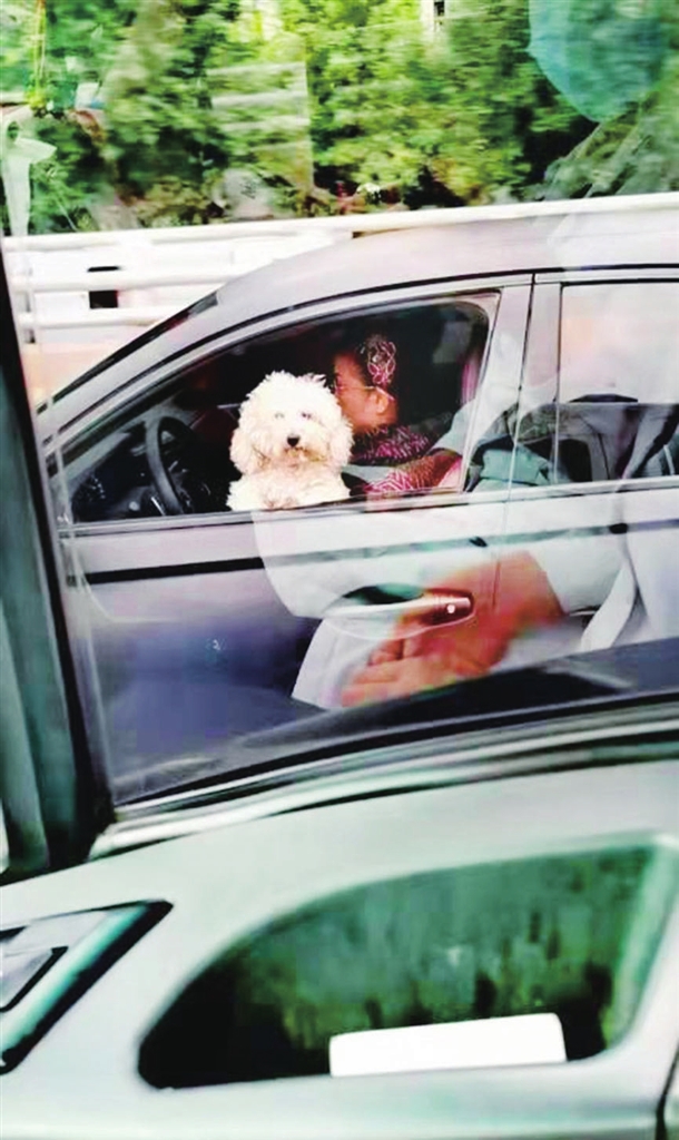 经过:9月26日上午8时许,我乘车从龙城大街往东中环方向行驶时看到这样的一幕。在我们车的前方,有一辆灰色本田轿车在快速行驶,奇怪的是,司机位置的窗户看到一只白色的小狗。后来我们的车靠近,才看到驾驶员是一位女士,她居然抱着小狗在开车!看着这辆车快速地上高架、穿隧道,让人不禁捏把汗。如此驾驶,实在危险!