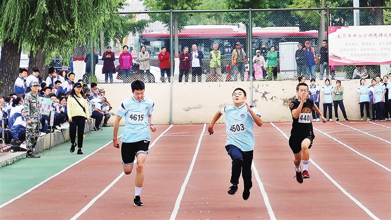 9月28日上午,太原第六十二中学举办秋季运动会,1300多名学生参加,同学们在12大项35个比赛项目中展现出自我风采。 张昊宇 摄