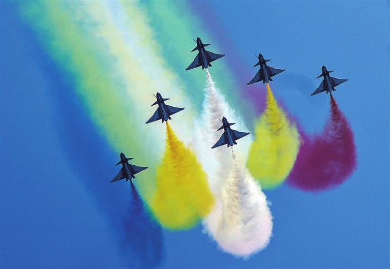 当天,来自中国空军的“八一”“红鹰”两支飞行表演队劲舞长空。