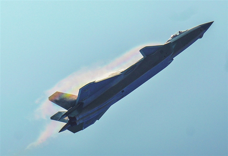 水平8字盘旋、横滚、1/2斜8字、半筋斗下翻转、垂直上升……当天上午,2架配装“中国心”的歼-20战机,以一系列惊险而精准的动作,给现场观众带来一场充满速度与激情的视觉盛宴,展现了良好的操控性能和优异的作战性能。
