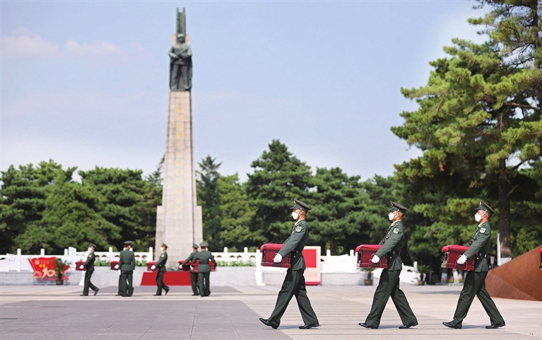 这是我国从2014年起,连续第8年迎回在韩志愿军烈士遗骸。8年来,总计有825名烈士忠魂还乡。