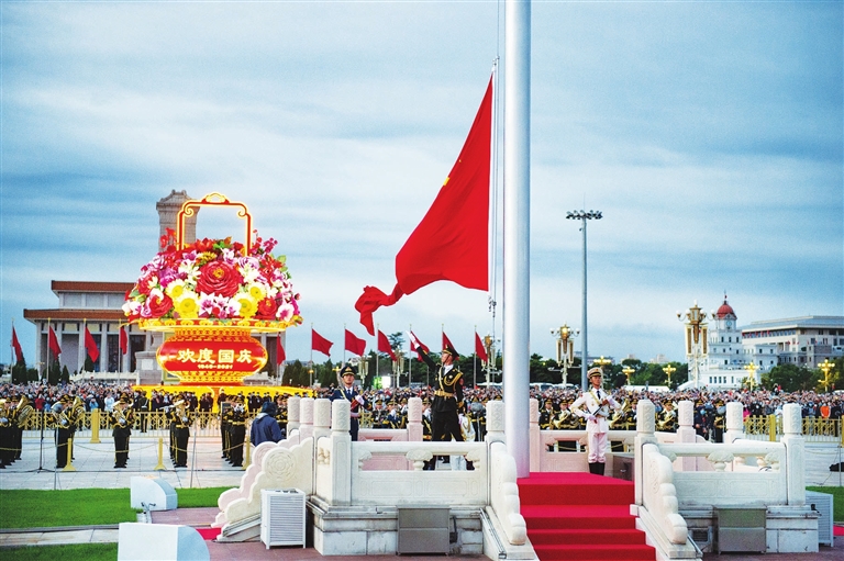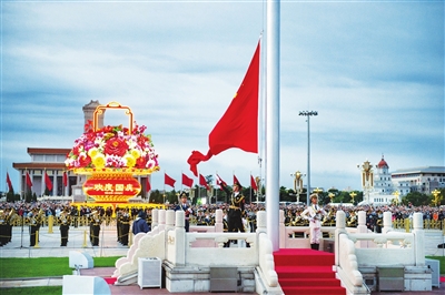 10月1日清晨,隆重的升国旗仪式在北京天安门广场举行,庆祝中华人民共和国成立72周年。 新华社 发