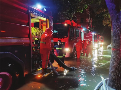 消防救援人员在煤机社区抽水作业。 申波 闫男男 摄