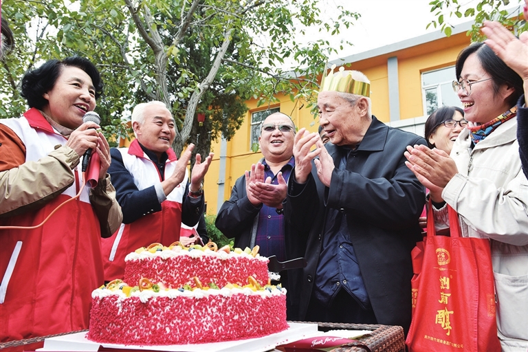 10月13日,30余名来自山西省红十字志愿者协会、太原市摄影家协会等单位以及爱心企业的志愿者们带着慰问品和文艺节目与缘梦圆老年公寓的老人们共度重阳节。 通讯员 李锋 摄