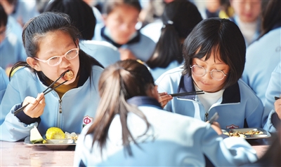 学校负责人介绍,由学校提供场地,选择引入第三方进行食品的采买、加工等,为学生提供放心午餐。按照健康、营养、经济、成本核算、非营利的原则,目前,该校提供的放心午餐,每名小学生收取16元,每名初中生收取18元,午餐后还可以躺着午休。价廉味美的饭菜以及午休服务吸引了全校50%的学生。