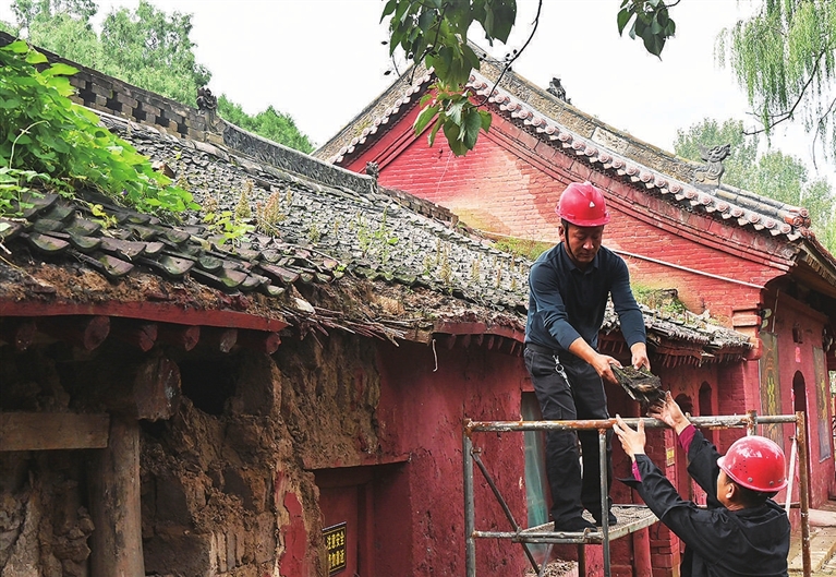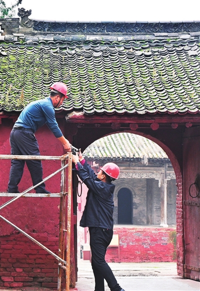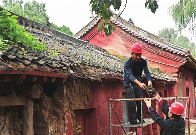 近三四年来,山西省长治市文明守望文物保护志愿者服务中心发动社会力量捐款,已为30余座古建搭建起彩钢棚。“这是最有效的急救措施,能为修缮争取更多时间。”中心负责人何艳军说。