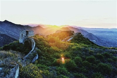 10月16日在河北迁安市境内拍摄的大理石长城日出景色(无人机照片)。深秋时节,位于河北省迁安市的巍峨长城与连绵山岭交相映衬,风光壮美。 新华社 发