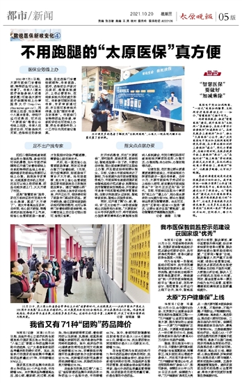 记者发现,在打造让群众更满意更便捷的医保上,市医保局努力探索的脚步一直没有停歇。去年10月,太原市医保电子凭证成功上线投入使用,标志着我市医保服务由“卡”时代正式迈向“码”时代。目前,市医保已实现38个事项的“网上办”“掌上办”,网办率由原来的22%提升到90%,群众办理医保业务更加智慧便捷。由此可见,我市“互联网+医保+N服务”模式,让群众逐步实现“零跑腿”,推动智慧医疗健康融合服务。记者 魏薇 文/摄