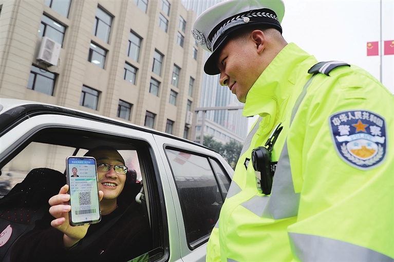 10月20日,我市驾驶人可以申领电子驾驶证了。大家登录手机“交管12123”APP,按照提示就可以完成申请。 张昊宇 摄