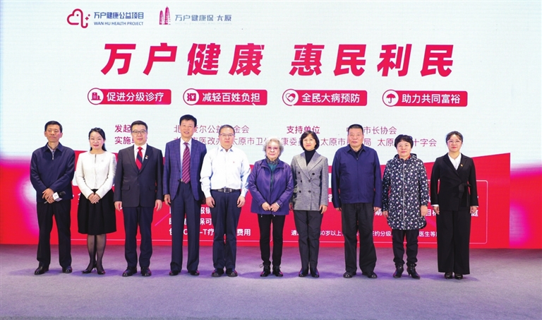 太原市卫健委副主任赵宏英在致辞中表示:为积极适应人口老龄化趋势,切实提升我市60岁以上慢病患者大病预防、分级诊疗及医疗保障水平,经市政府同意,决定在全市开展“万户健康”公益项目。