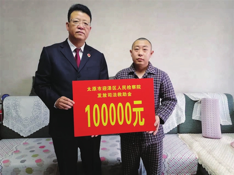 10月19日,迎泽区检察院依据相关规定,决定对张崇虎给予司法救助金8.5万元、对张崇虎儿子给予司法救助金1.5万元。检察机关送去司法救助金的当天,市红十字会工作人员也上门慰问,给英雄送去了米面油等慰问品。