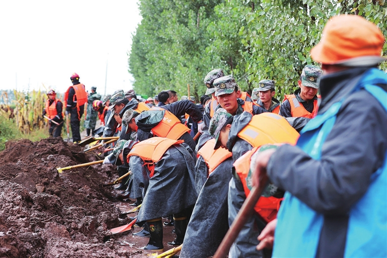 汛情就是命令。小武村党支部紧急对接各路抢险救援人员,很快组成支部委员和党员带头的13个工作小队。“党支部在,村‘两委’在,小武村就在。”小武村党支部委员王吉牛在集结时坚定地说。