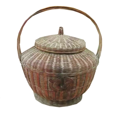 这时聪明的老篾匠制作的带盖子的竹篮便派上了用场。这种竹篮既能防止食物变馊,又能防止害虫入侵甚至小猫偷吃,这种竹篮是当时人们防猫鼠偷食的“神器”。