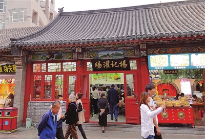 “奇味斋炸串”南面是“黄氏大面皮”,又一处吃货拥挤的网红店。吃炸串也得排队,一边恨,一边不舍。炸串加太钢汽水是标配,人均20元,吃好喝好。