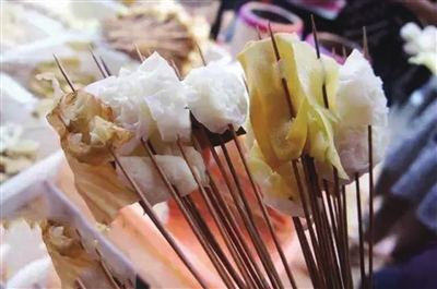 一元钱五六串,不分荤素。营养平衡,丰俭由人,10元就能搞定一顿饭。