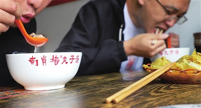 有时,烙饼泡在丸子汤里,也是一道吃法。“老板,再给续点汤。”食客一句喊,其实是表扬。