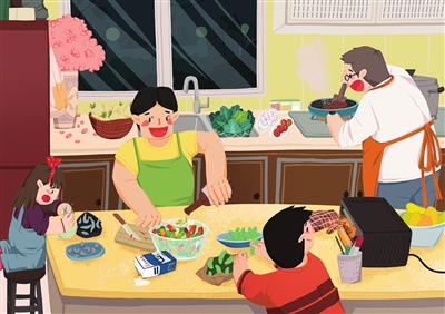 一个家,一个厨房,父母不仅向孩子传递了爱和温情,也传递了热爱食物、热爱生命的人生观。温暖的厨房让孩子懂得,食物是一种治愈良药,可以缓解疲惫;热闹的厨房让孩子感受到,食物是一份亲情的承诺,可以传递真爱。在吃饭的过程中,家人坐在身旁,来自心与胃的满足感交织在一起慢慢升华,碗筷中都是爱的气息。厨房不分大小,都留着味蕾对家的记忆和眷恋;食材不分贵贱,都藏着父母对孩子的温情和爱意。厨房里的热气腾腾,就是生活中一种表达爱的仪式感。
