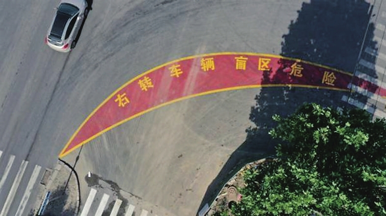此外,天津、杭州、成都、合肥、昆明等多地交警部门还在大货车通行较多的十字路口,划出了“右转危险区”,喷涂上显眼的红色或黄色,警示大货车驾驶员和行人等。