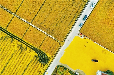 10月26日,晋源区北大寺村,村民在晾晒刚刚收割的水稻。日前,晋源区5000亩水稻陆续开镰,农民喜迎丰收。 记者 韩双喜 摄