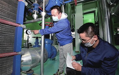 11月2日,万柏林区和平北路西宫南二巷热力站内,工作人员正认真巡查供热运行情况。根据今冬供热形势,市热力公司制定了在不同气温条件和不同运行状况下的供热运行方案、应急预案,人员24小时值守监控运行情况,全力以赴保供热。 记者 邓寅明 摄