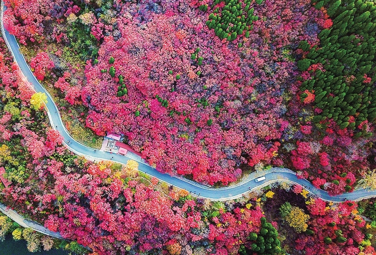 金秋时节,地处山东省济南市南部山区的红叶谷风景区层林尽染,秋色绚烂。
