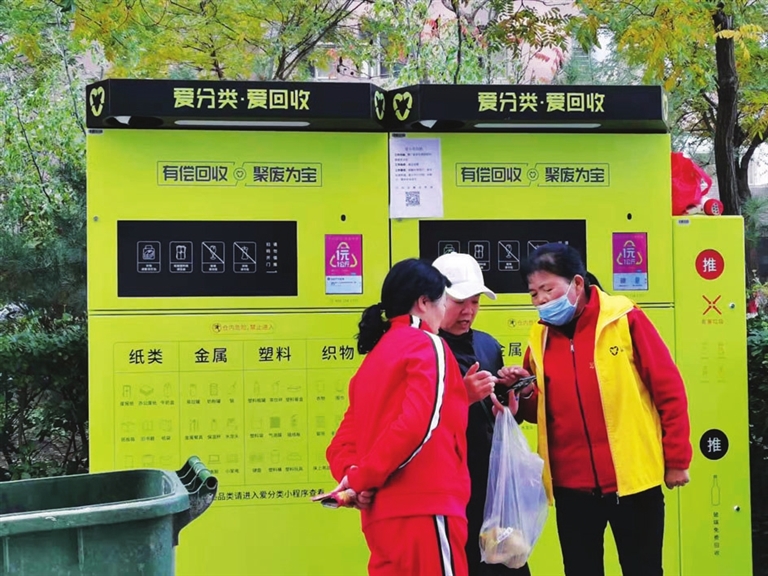 这两天,家住小井峪社区的居民李阿姨每天早上出门晨练,都会顺手拎上家里的废纸箱、饮料瓶,到楼下新装的智能垃圾分类回收机上,轻松完成“废物变现”。