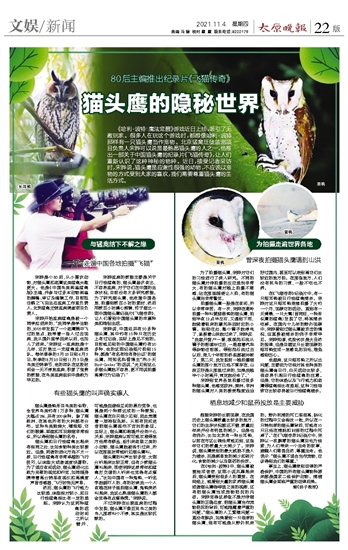 宋晔监测的数据主要是关于日行性猛禽的,猫头鹰昼伏夜出,不容易监测,对于它们在中国的生存状况,目前没有太多研究数据。为了研究猫头鹰,他走遍中国各地,拍摄到数百小时的素材,然后用数百小时精心剪辑,终于推出一部中国猫头鹰纪录片《飞猫传奇》,让人们看到中国猫头鹰的丰富种类和隐秘生活。