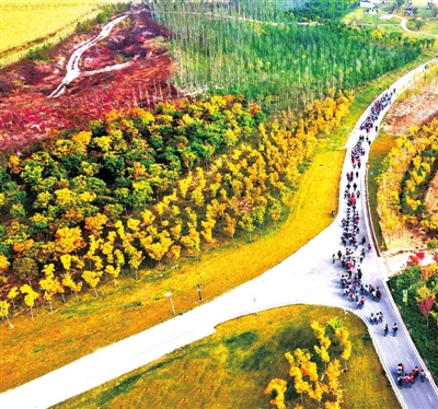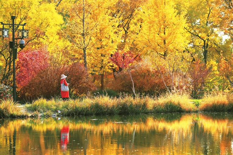 自行车道旁,一株株银杏黄得热烈,如起舞的少女,为秋天尽情喝彩。