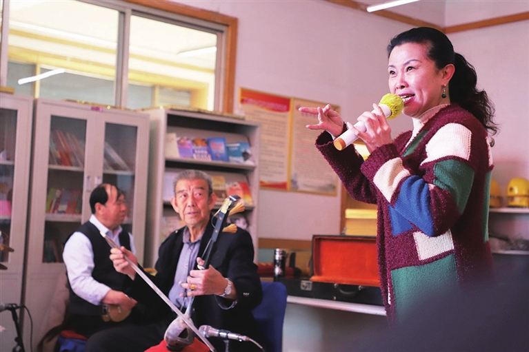 社区一些老年人爱唱戏,赶巧当地一家剧团解散,剧团的老演员阴昌盛、李粉环两口子是该社区居民。社区了解情况后,主动联系他们,一起撑开了社区晋剧团的架子。为帮助晋剧团打开局面,社区一路“鸣锣开道”。2016年,社区通过惠民工程项目,给剧团添置了2.5万元的头饰、戏服及道具。学戏的老年朋友们都很感动,每个双休日的练唱排戏都是铆足了劲。今年农历七月初二,古交传统赶会,社区搭台唱戏。学戏的老年朋友粉墨登场,呈现了一台完整的《打金枝》剧目,一时惊呆了台下看客。台上的老年人偷着那个乐啊,心里美滋滋的。