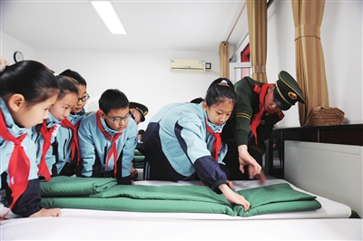 在战士宿舍,少先队员看着有棱有角的豆腐块被子、摆放整齐的鞋、无一丝杂物的桌面等,对武警叔叔更加钦佩。武警战士现场演示了军被的叠放方法,耐心地向孩子们演示着每一个步骤,讲解每一步需要注意的细节,孩子们听得非常认真。六年级学生刘浩民说:“武警叔叔既勇敢又细心,我要向他们学习。”随后,武警战士们表演了列队、正步走等日常训练科目,飒爽的英姿、威武的面貌,给孩子们留下了深刻的印象。