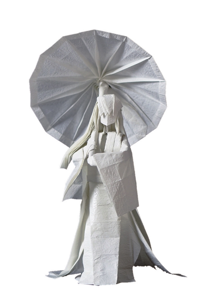 “能够折出一个完整的人物,人物手中还持着一把撑开的圆形油纸伞,这在技术上非常难实现。”陈晓表示,以往的折纸作品多以正面和侧面为主要观赏角度,背面会省略一些东西,所以很难做到面面俱到,“我们只能在有限的空间里发挥纸张的可能性,尽可能作品的细节更加丰富。”
