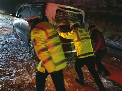 11月6日晚8时至7日上午,为积极应对风雪恶劣天气,娄烦县公安局全警动员,投入到疏导交通一线,保障道路安全畅通。当晚,一辆汽车因道路湿滑结冰,不慎一头冲进了路边排水沟里。正在路面执勤的民警见状,立即跑上前,与司机一起将车辆抬出排水沟。 据悉,娄烦县公安局各派出所民警和交警大队民警,共运送被困乘客19人,救助被困车辆25辆,疏导车辆200余辆,调解交通事故1起。 刘友旺 娄轩 摄