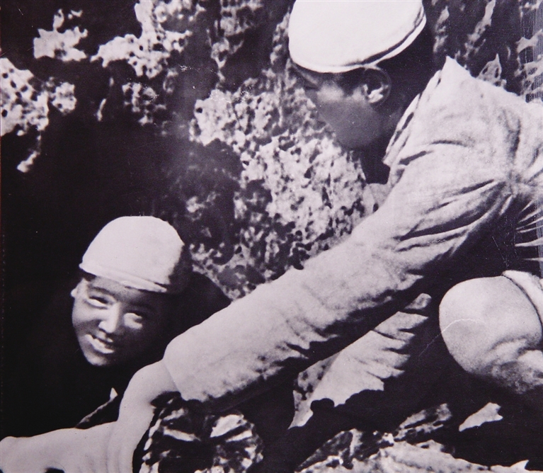 1942年春,他在杨家岭大礼堂工地参加劳动。上大梁时支架突然断裂,他只身一人上前顶住,挽救了梁下施工的工人和战友,自己却受了伤。