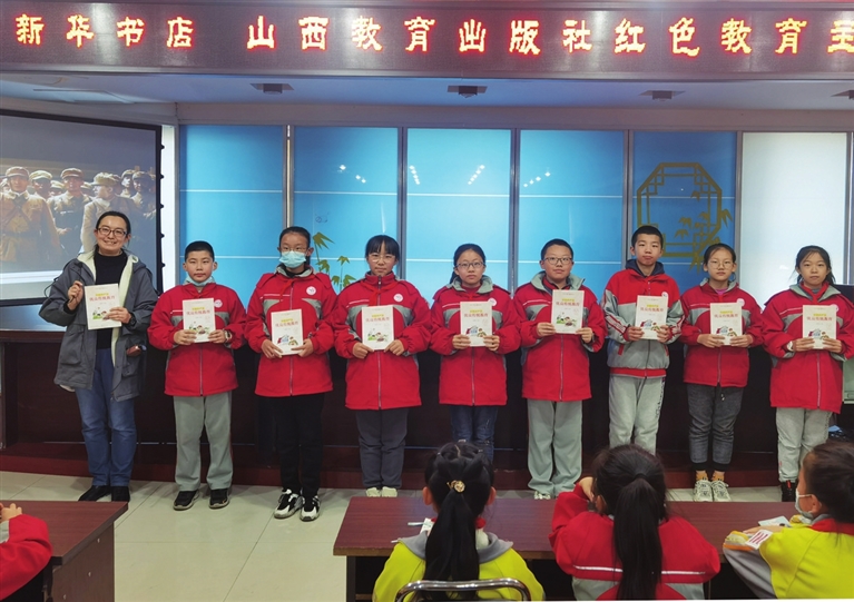 11月11日,山西教育出版社、太原市新华书店组织志愿者走进兴华街第二小学校,开展文化进校园红色教育主题讲座,并捐赠了《中国共产党优良传统教育》丛书。 记 者 牛利敏 摄