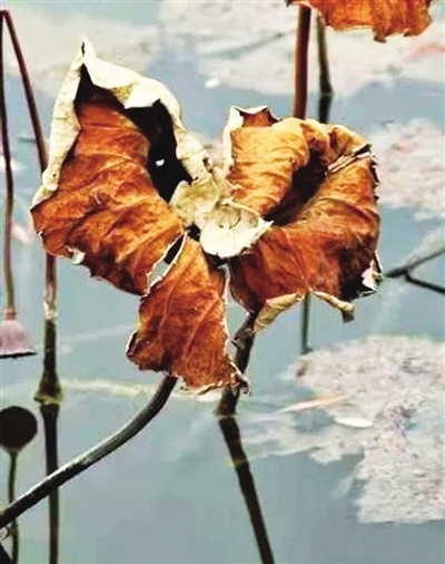 秋风愁,我独立湿地怅望洁白无瑕的荷花像羞花闭月的少女失去了摇曳的舞姿那出淤泥而不染像高傲的君子荷叶失去了挺拔的英姿这是任何力量都不能阻挡的“莲子已成荷叶老”(注)荷叶自信从湖底历经数月的顽强冲出了湖面。向世界展示自己存在的楚楚动人此时,我感叹不已昨日喜雨,今日叶黄现在的自己就像一片残叶怅望着汾河的潺潺水声其实残叶也是一首绝美的诗注:出自(宋)李清照《双调忆王孙·赏荷》