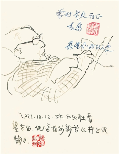 这真应了他对自己斋名“未了斋”的自解:“‘了犹未了’,肯定是一直到了也未能全了,最后定是不了了之。”签完名,必胜请他再写句话,他写了“莫放春秋佳日过,最难风雨故人来”,流露出他对过往岁月的伤怀,对故友亲朋的思念。