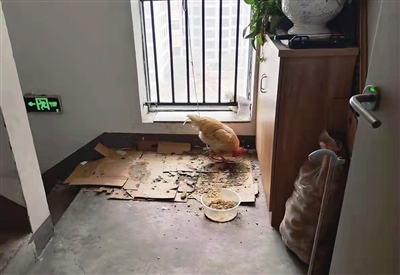 本报讯(记者 韩睿 通讯员 杨阳 文/摄)11月15日上午,滨河东路三千渡小区6号楼1单元居民向翠馨苑社区反映,有住户在楼道里养了一只鸡,严重扰民并影响环境卫生。随后,社区网格员安彩燕赶到现场,经过劝导,当事居民将鸡关进家里,并配合清扫了楼道。