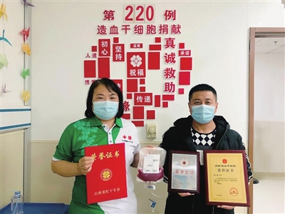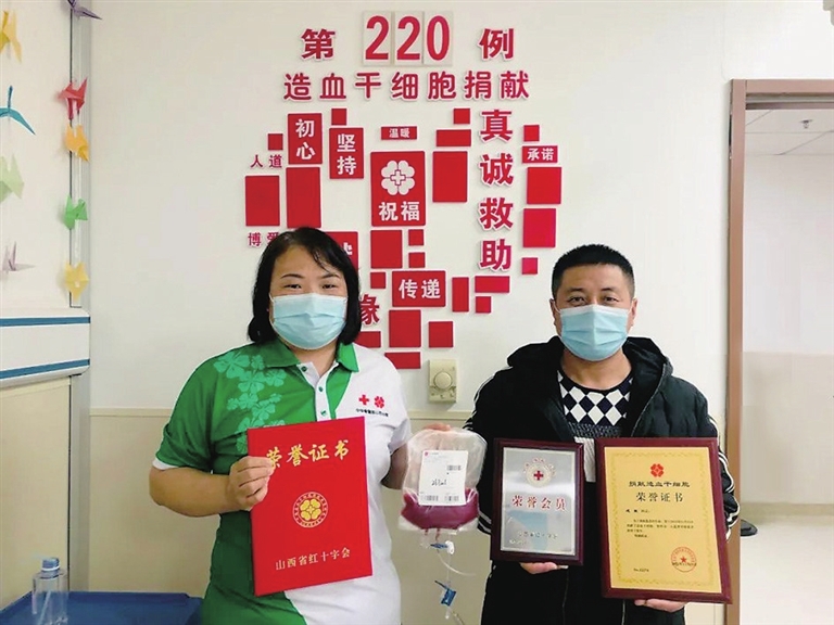 今年37岁的逯霞来自晋中市,她乐观开朗、热心公益、乐于助人。多年来,她一直积极参与无偿献血,从最早捐献全血,到如今隔三差五捐献机采血小板,是有名的“献血达人”。多年献血和参加公益活动的经历,让逯霞深切体会到健康和生命的宝贵,2019年,在一次献血时她主动登记采样加入中华骨髓库,成为一名造血干细胞志愿捐献者。