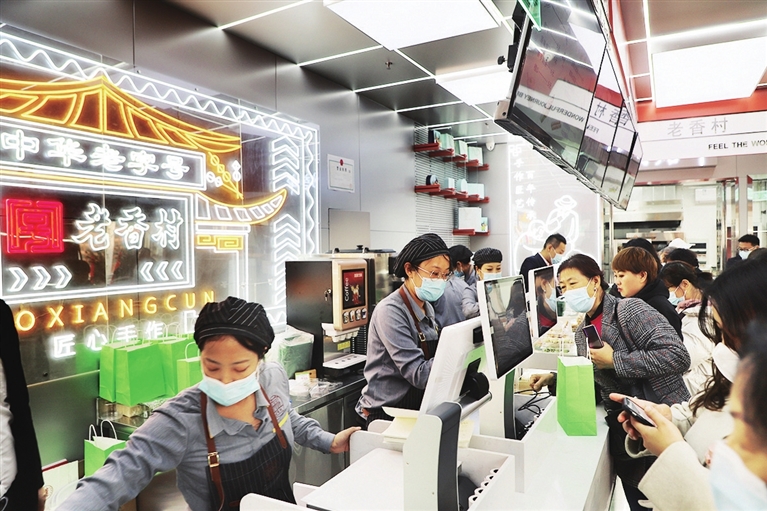 11月18日,经过8个月的改造,钟楼街老香村重新开业迎客,市民慕名而来尝鲜,熟悉的味道勾起了老太原人的共同记忆。 张昊宇 摄