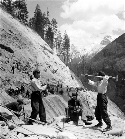 逢山开路,遇水架桥。10多万人的筑路大军克服高原缺氧、天险阻隔、物资匮乏等不利条件,靠着简陋的工具,以“让高山低头,叫河水让路”的英雄气概,开始了征程。